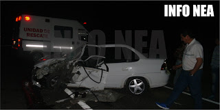 Trágico accidente de transito sobre ruta nac 11 km 897.500 en el que intervinieron una camioneta ford f.100 cabina simple conducido por ciudadano Fabian Corgnali acompañado por Martin Corgnali 22 años su hijo, Ambos domiciliados en Villa Ocampo, quienes se desplazaban norte - sur, y un automóvil chevrolet corsa conducido por Alberto Chamorro Policía jubilado 64 años acompañado por su esposa Stella Maris Quatrin 60 años. Ambos domiciliados Florencia, quienes se desplazaban en sentido sur - norte. la Colisión entre ambos vehículos se dio de frente, en ocacion en que aparentemente el señor Chamorro intenta sobrepasar otro vehículo y se encuentra de con la camioneta Ford f 100, Al momento del impacto fallece Martin Corgnali quien es despedido de la camioneta y queda tendido a unos 30 metros del vehículo, en tanto su padre es trasladado grave al hospital, por otra parte, Alberto Chamorro sufrió fracturas de piernas y brazo, que es lo que se pudo constatar a simple vista, y la Esposa de Chamorro, Stella Maris Quatrin sufrió lesiones leves, ambos también fueron Trasladados al hospital de Las Toscas.