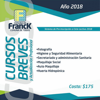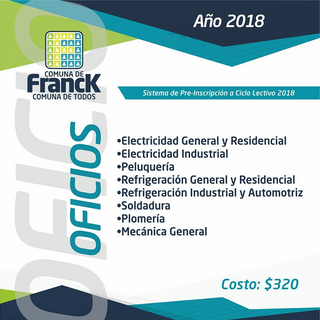 Desde el próximo lunes 26 de febrero comienzan las preinscripciones para el nuevo ciclo lectivo 2018 de la Escuela de Arte y Oficios de la Comuna de Franck.