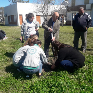 Se hizo presente el Ministro de Medio Ambiente de la provincia, Ing. Jacinto Speranza, en la Escuela Adolfo Lehmann de Las Tunas para lo que fue la forestación en el patio del establecimiento.