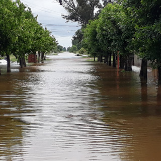 Un promedio de 250 mm ha caído de lluvia entre la madrugada del domingo y hasta el medio día de hoy en toda la colonia incluyendo San Wendelino, Santa María Norte, que el agua de excedente del primero de los nombrados también pasa por esta zona buscando el río, a través de los canales realizados en su momento.